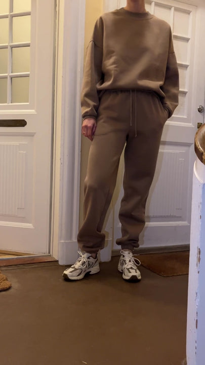 Med vores sweatshirt får du den lækreste sweat i oversize pasform og ekstra længde på både krop og ærmer. Kvalitet er super blød og farven passer til vores matchende sweatpants.