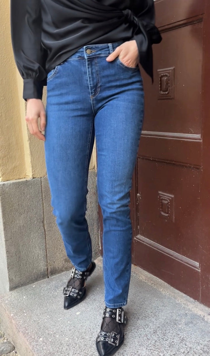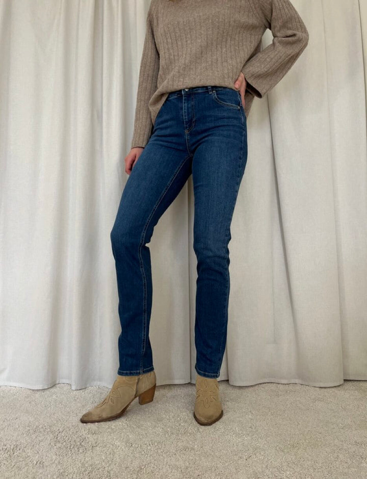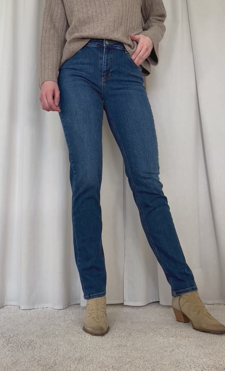 Med Celina jeans får du et par gode klassiske jeans med regular pasform. De er hverken for stramme eller for løse. Modellen hedder high rise, men sammenlignet med de andre produkter vi tilbyder, svarer dette til en almindelig/ medium taljehøjde. Disse jeans er lavet af BCI bomuld og med god strækbar funktion. Med disse jeans får du et kvalitetsprodukt som du kan bruge året rundt med høj komfort og super pasform.
