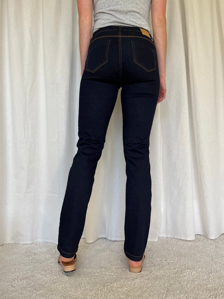 Med Celina jeans får du et par gode klassiske jeans med regular pasform. De er hverken for stramme eller for løse. Modellen hedder high rise, men sammenlignet med de andre produkter vi tilbyder, svarer dette til en almindelig/ medium taljehøjde. Disse jeans er lavet af en lækker bomuldskvalitet og med en smule stræk. Med disse jeans får du et kvalitetsprodukt som du kan bruge året rundt med høj komfort og super pasform