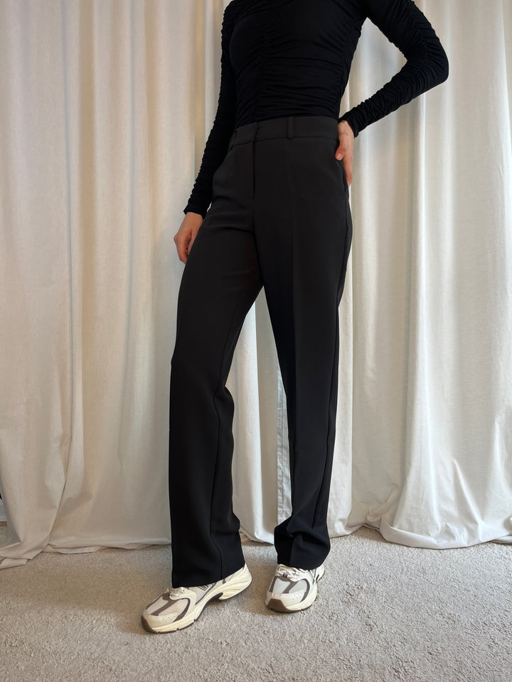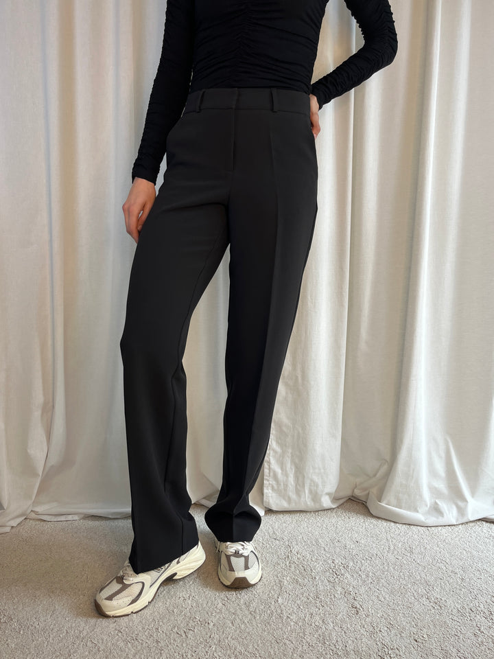 Celine suit pants er vores svar på de helt perfekte habitbukser som aldrig går af mode! De er lavet i en kraftig kvalitet med presfolder, bæltestropper og lynlåslukning. Bukserne har mellemhøje talje og en lige pasform. Det er bukserne du kan bruge til alle anledninger året rundt og det mest sikre og klassiske valg når det kommer til bukser. Føl dig godt tilpas i de eksklusive bukser uanset tid og sted. Bukserne er en del af vores LW Limited linje og føres i begrænset antal!