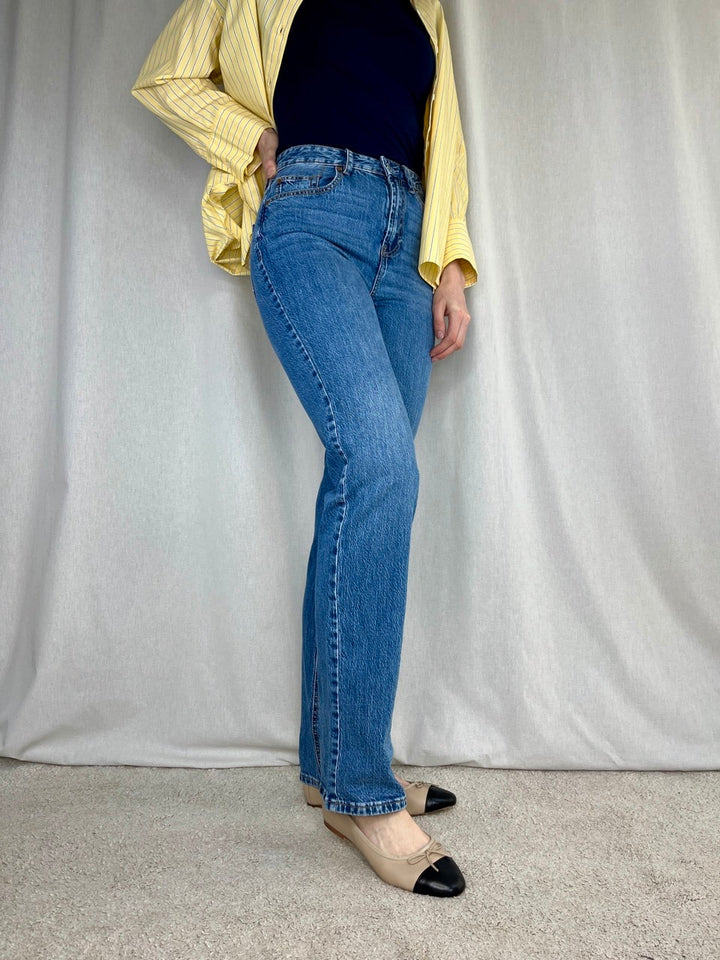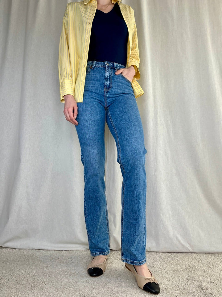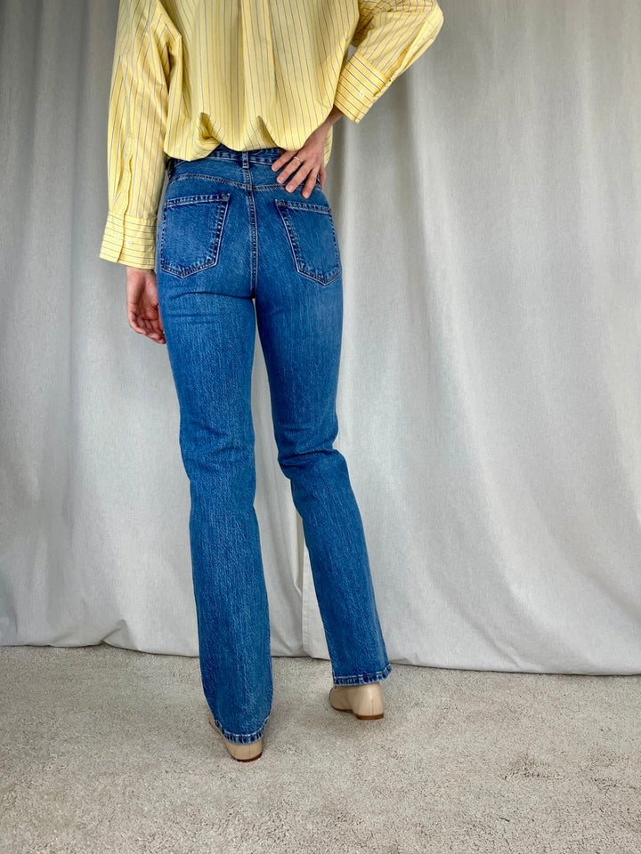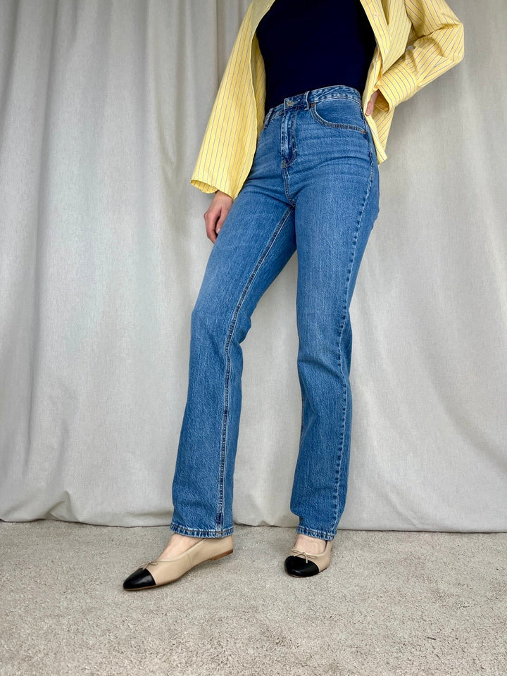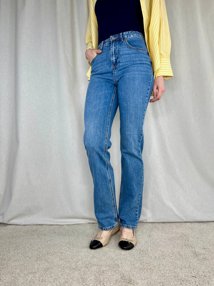 De fedeste jeans med lige pasform, hverken for stramme eller for løse! De er tilgængelig i en lang længde 36, høj talje og den flotteste jeansblå farve. Et par absolut musthave jeans til en god hverdagsgarderobe! Mål på indvendig benlængde, størrelse 30/36: 86cm.