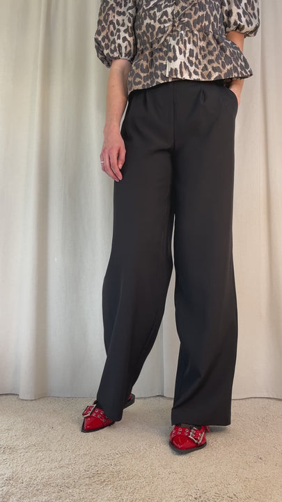 Med Merel pants i sort får du de skønneste bukser i løs pasform med elastik bagerst. Bukserne er lavet i en fast glat kvalitet der falder så smukt. Opnå et tidsløst og klassisk udtryk med eksklusive detaljer! Modellen er 186cm høj, iført størrelse S. Bukserne er en del af LW Limited som eksklusivt er tilgængelig hos os og findes i begrænset antal!