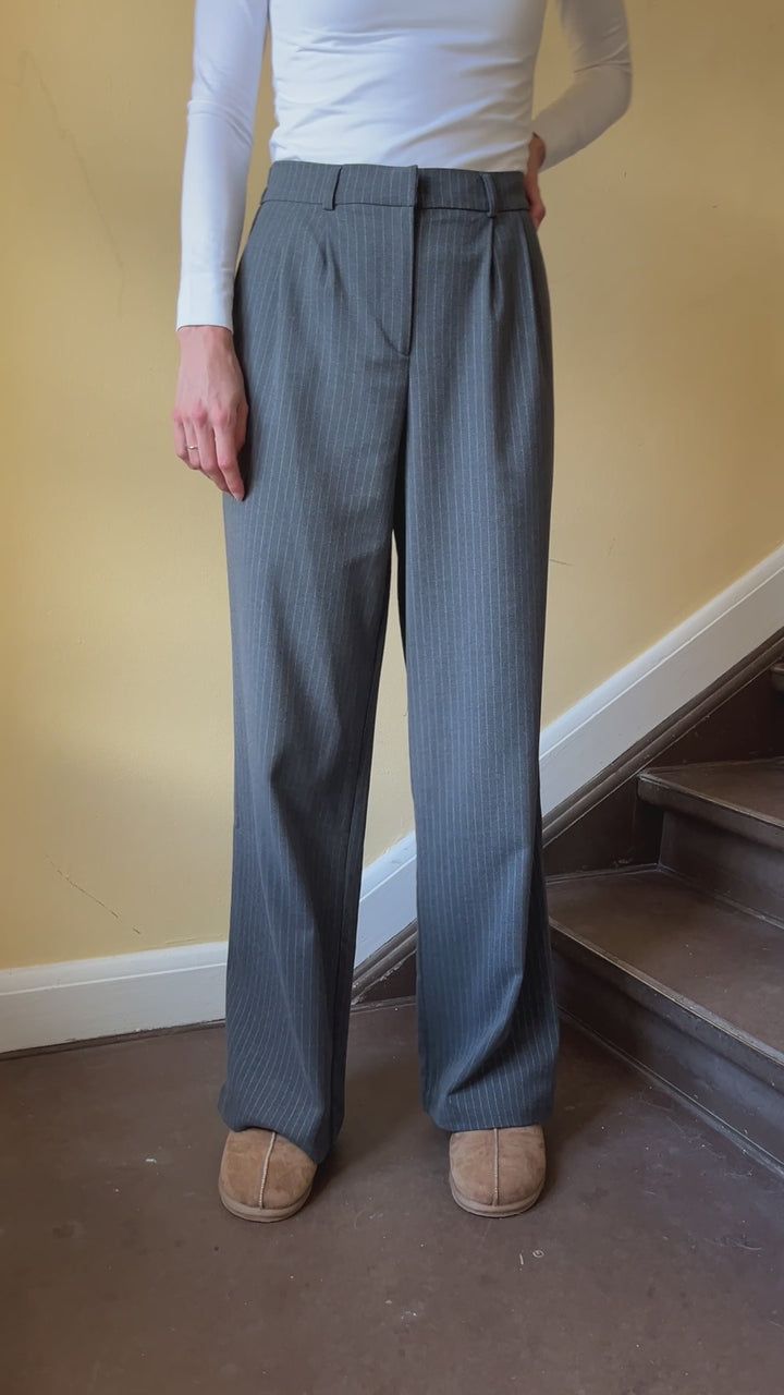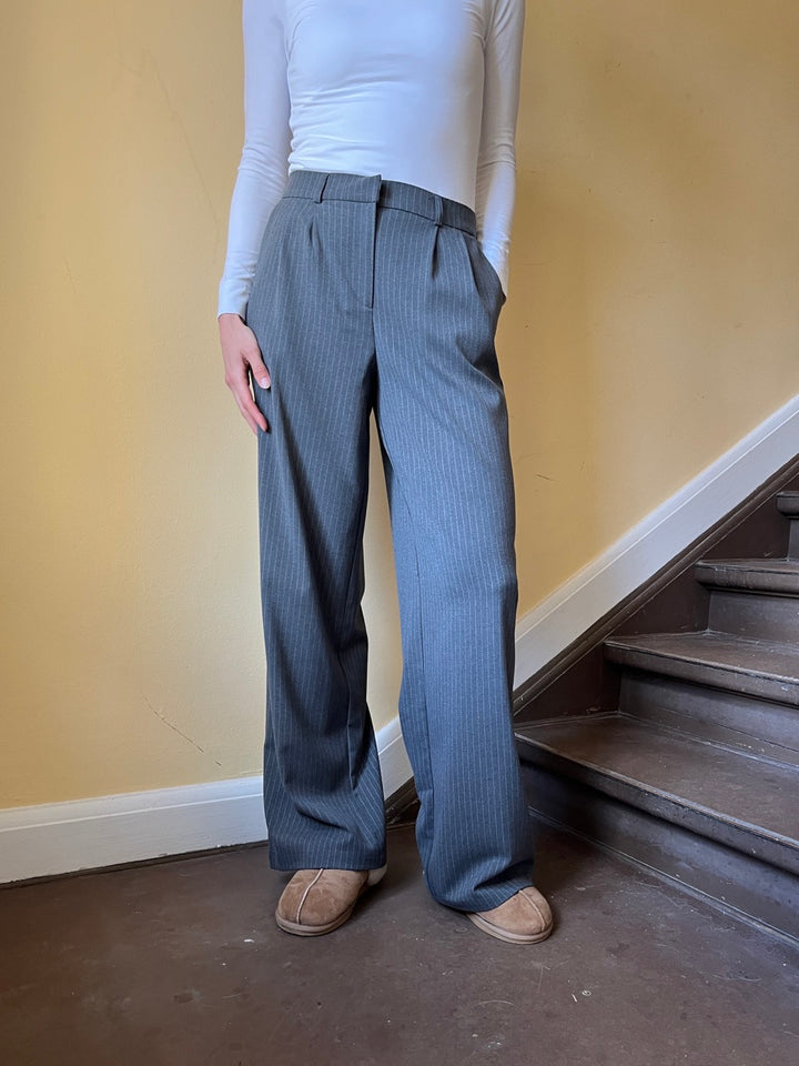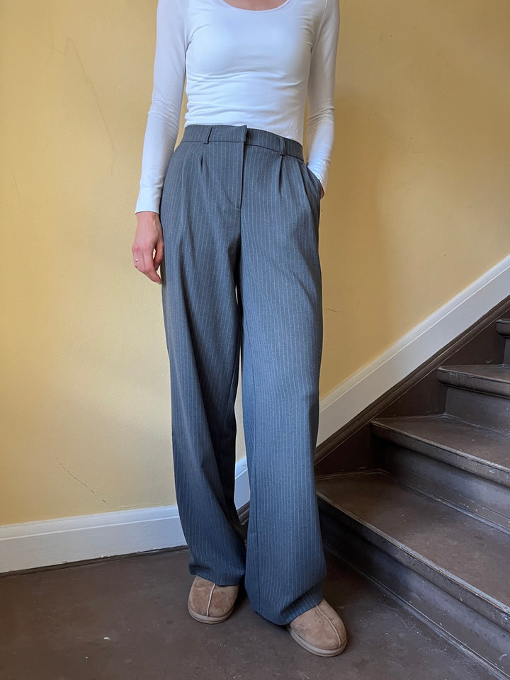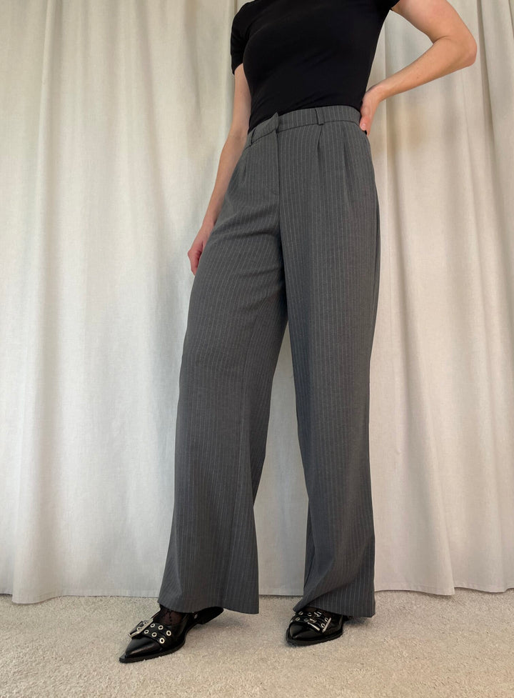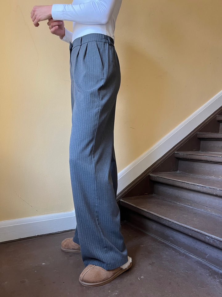 Merel pant får du de fineste grå nålestribede bukser i klassisk pasform og elastik bag til. Bukserne er lavet i et løst lige snit der både giver et flot look og er super behagelige at have på. Klassiske tidsløse bukser som du kan bruge år efter år. Bukserne er del af Longwear's egen kollektion som findes i begrænset antal!