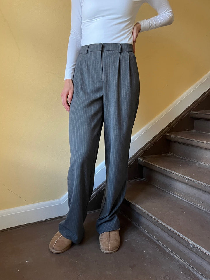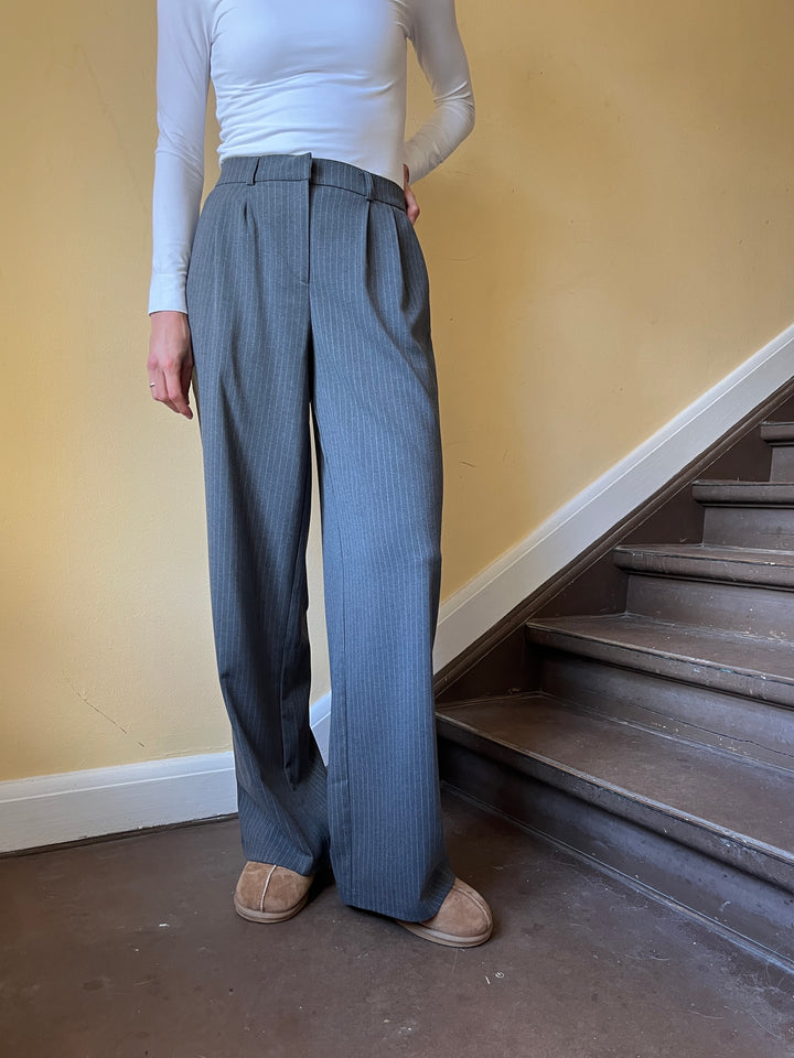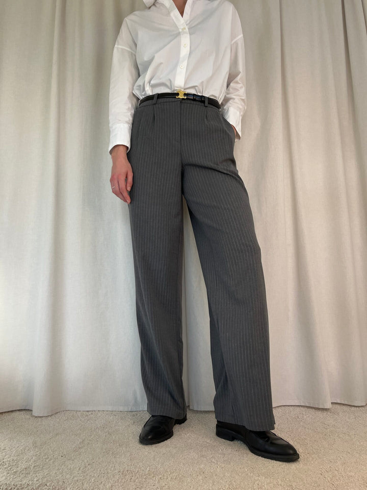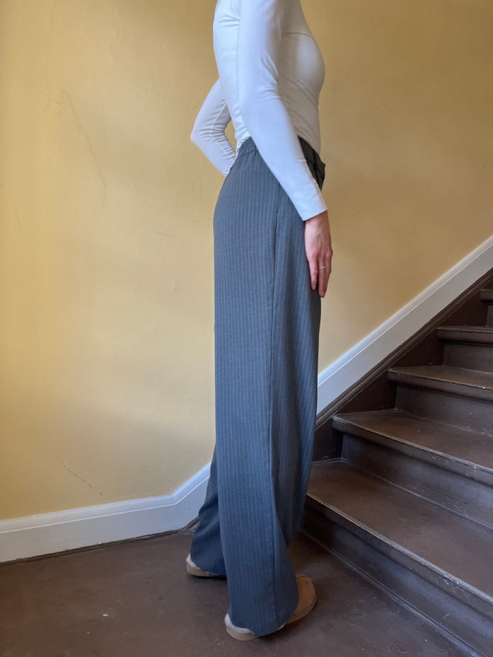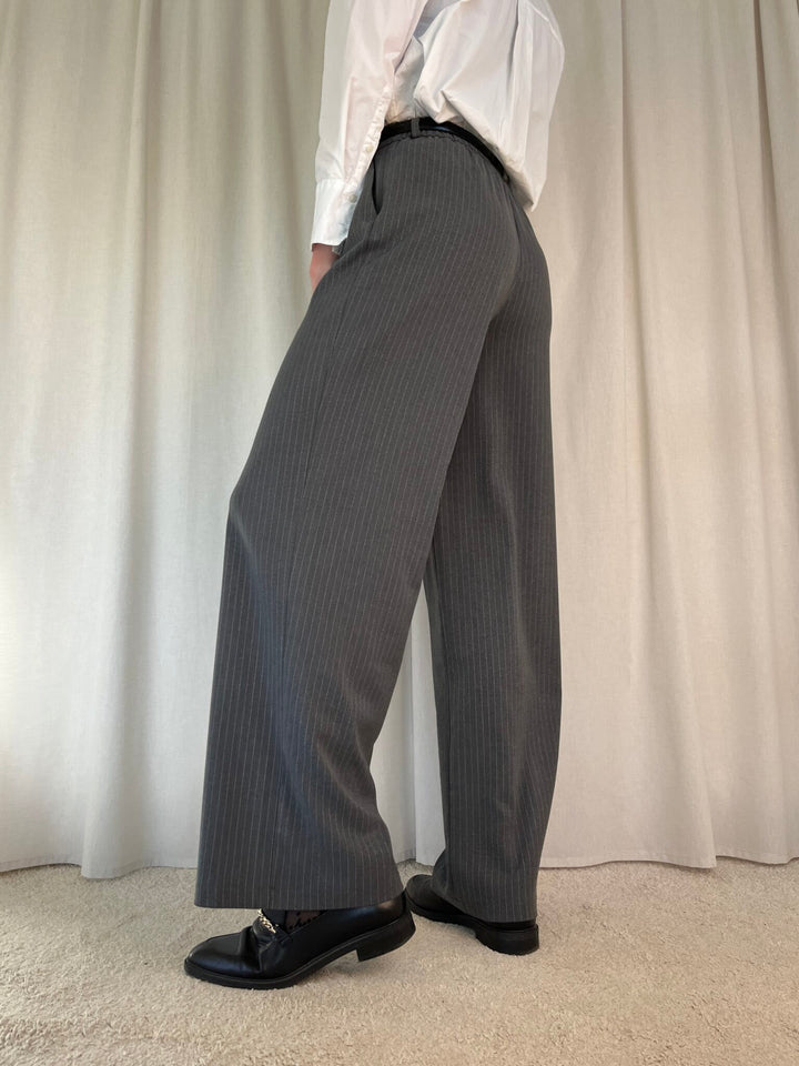 Merel pant får du de fineste grå nålestribede bukser i klassisk pasform og elastik bag til. Bukserne er lavet i et løst lige snit der både giver et flot look og er super behagelige at have på. Klassiske tidsløse bukser som du kan bruge år efter år. Bukserne er del af Longwear's egen kollektion som findes i begrænset antal!