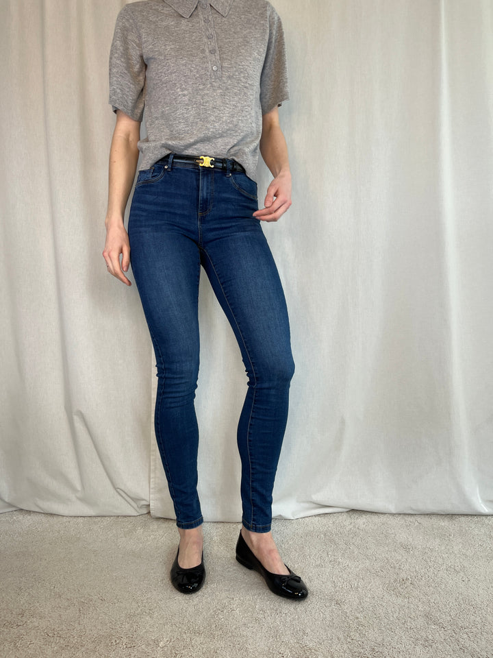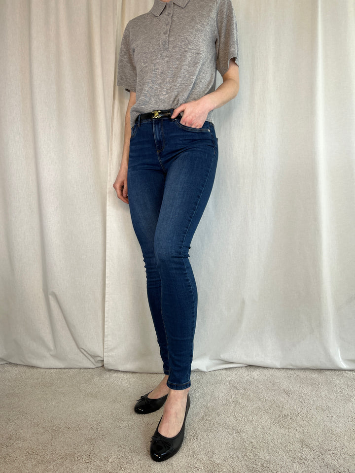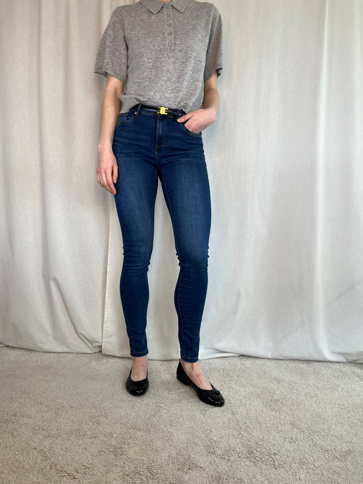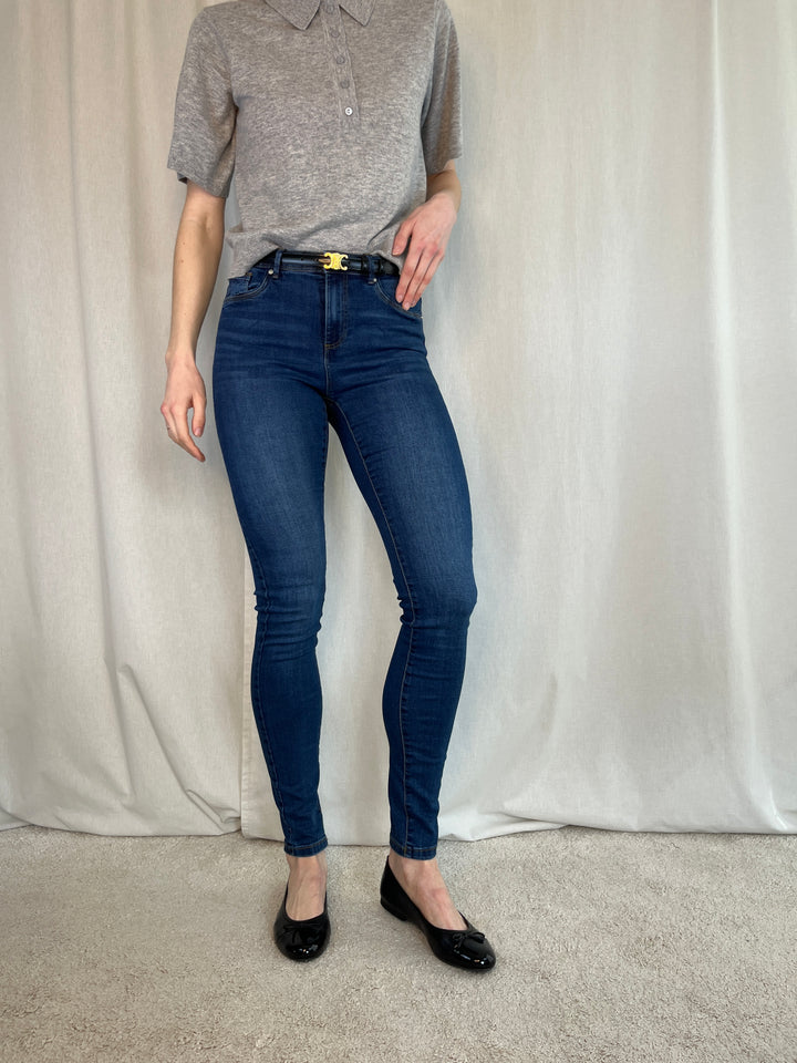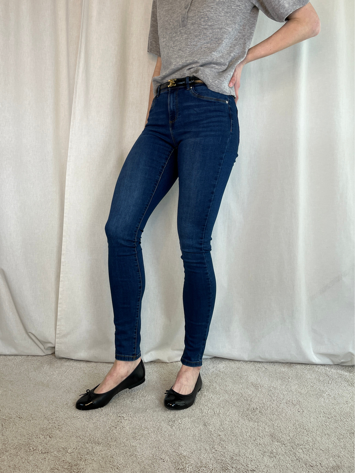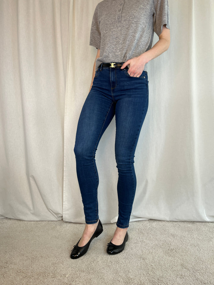 Midwaist Slim Jeans, mørkeblå