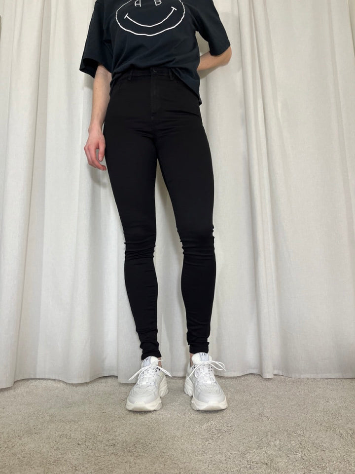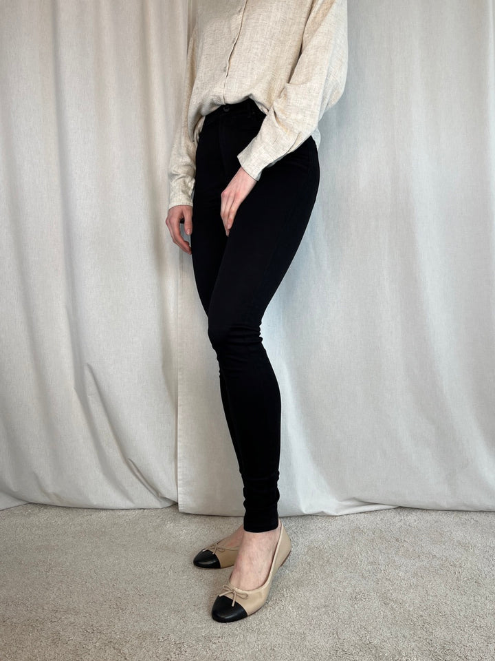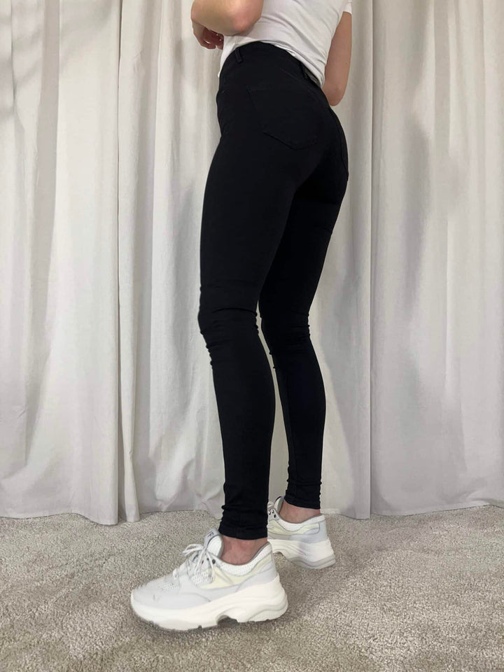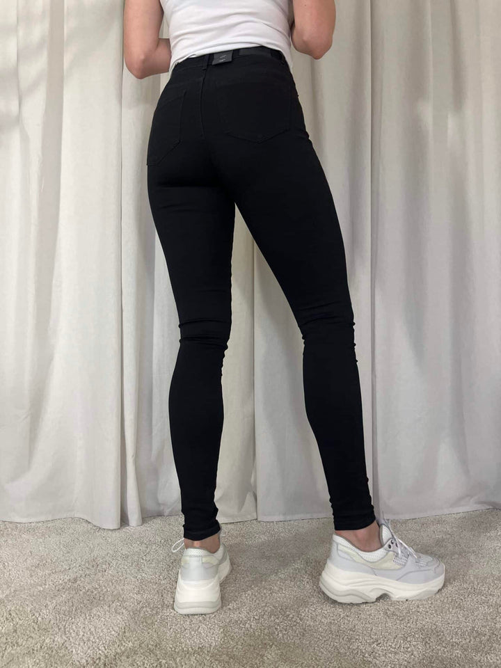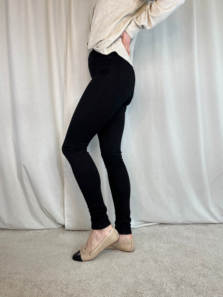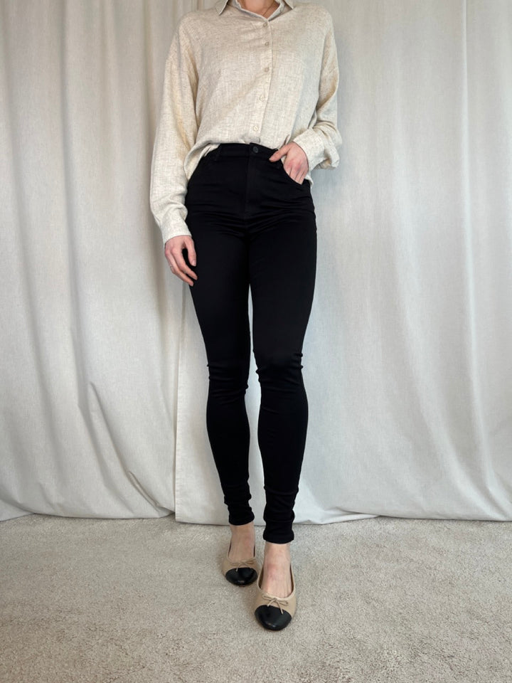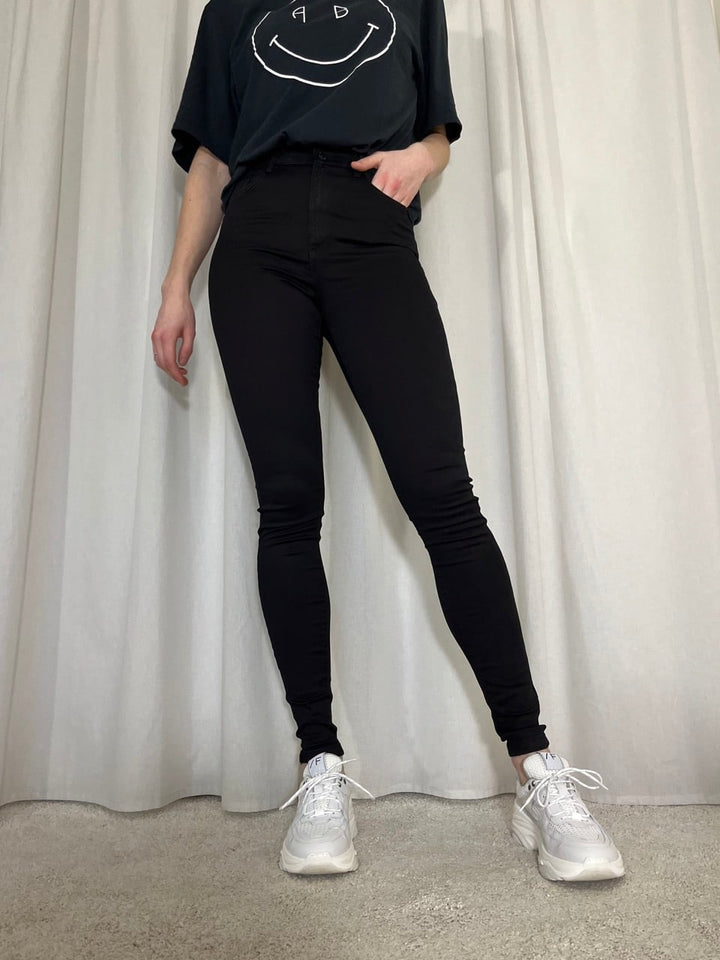 Med disse jeans får du et par lækre slimfit jeans med høj talje i sort denim med bæltestropper, lynlås og knaplukning. En helt enkel og god klassisk style, som sidder godt og som er et musthave i en basisgarderobe. Der er en smule stræk i, hvilket gør dem ekstra behagelige at bruge.