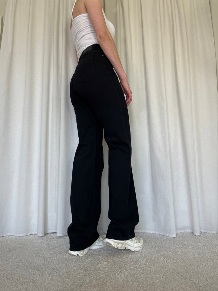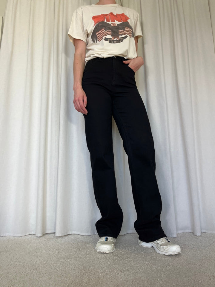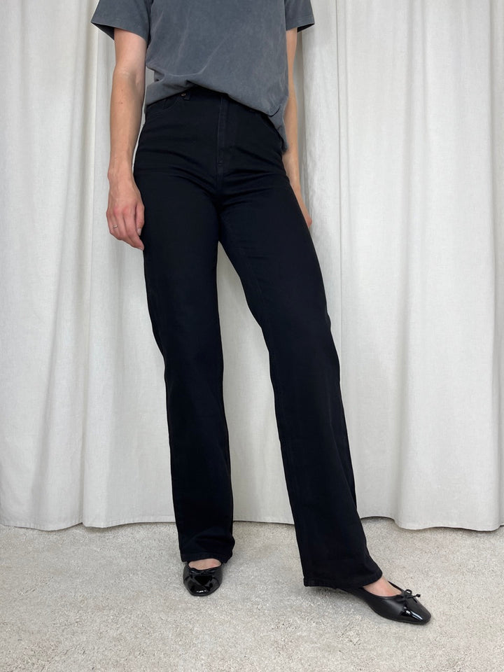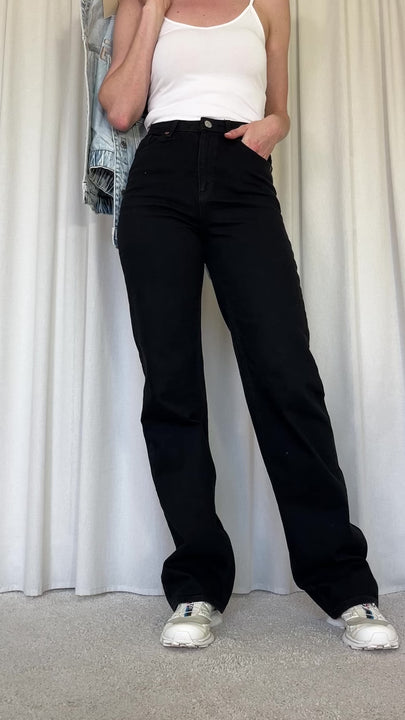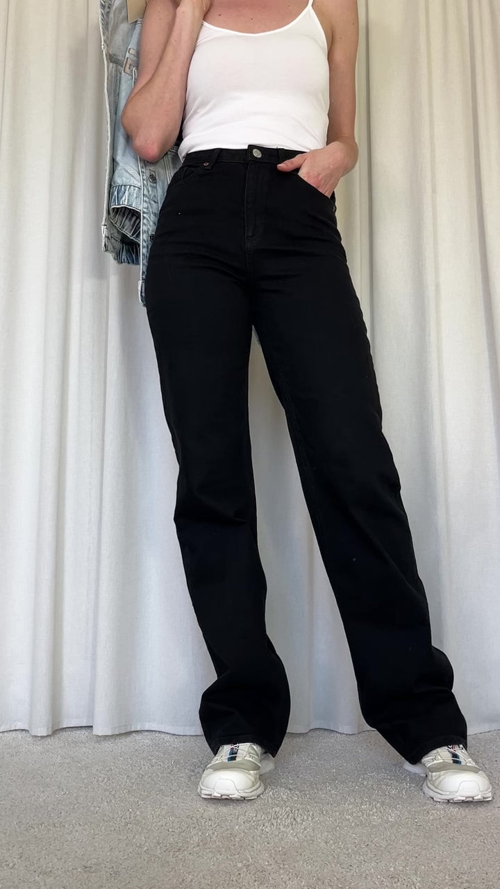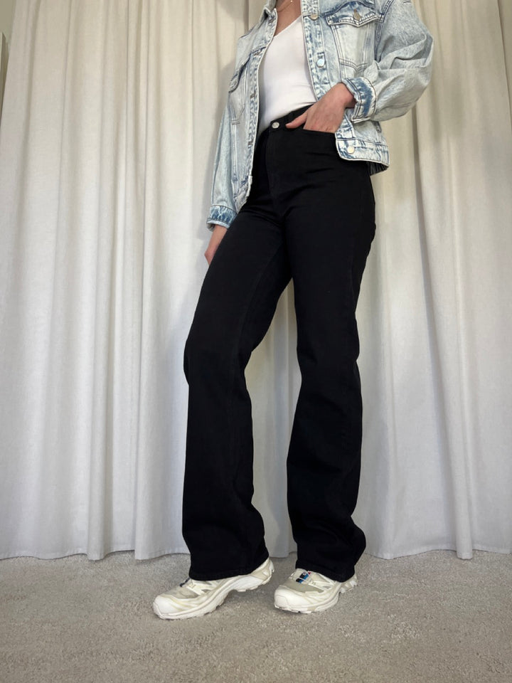De bedste jeans som kan bruges året rundt! Straight jeans med høj talje og bæltestropper. De lukkes med lynlås og knap og har lommer både for og bag. Modellen er lavet i et straight/lige snit der gør, at de sidder til omkring bagdelen og bliver løsere i bunden. Disse jeans er super cool at style til både stiletter samt sneakers og deres faste pasform gør, at de bliver siddende, hvor de skal.