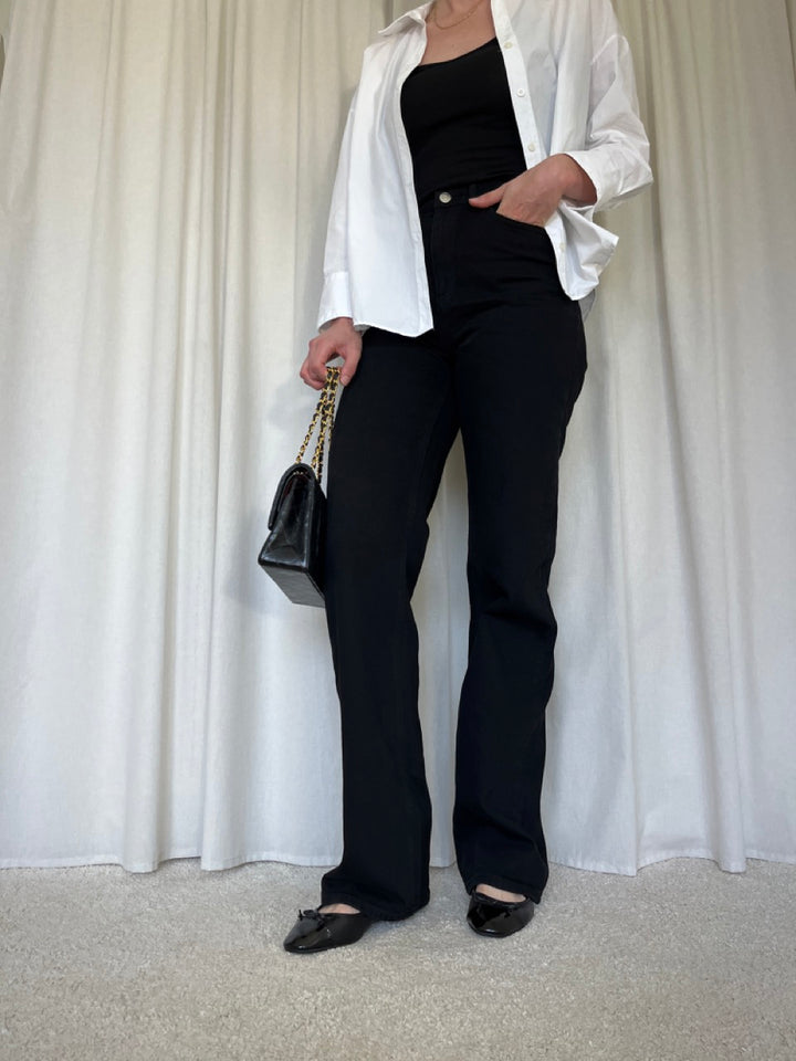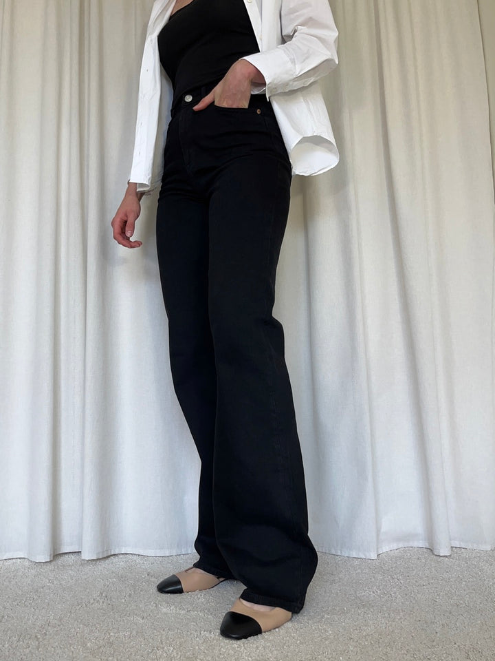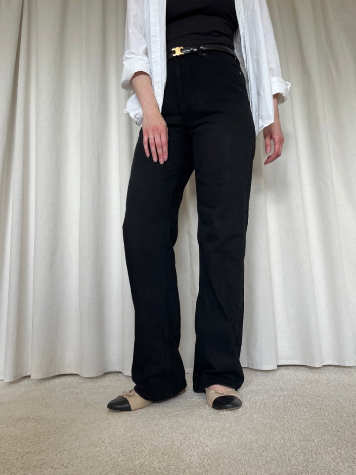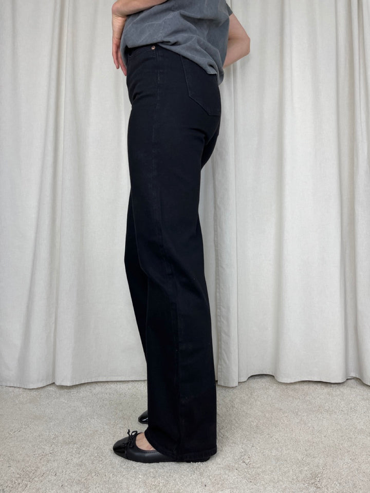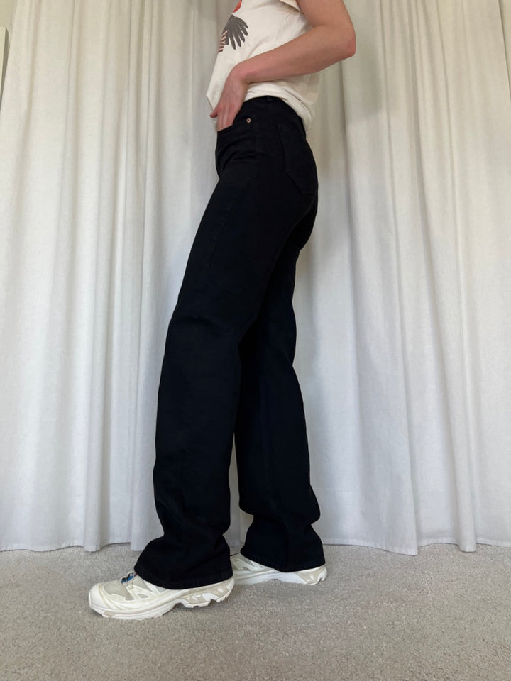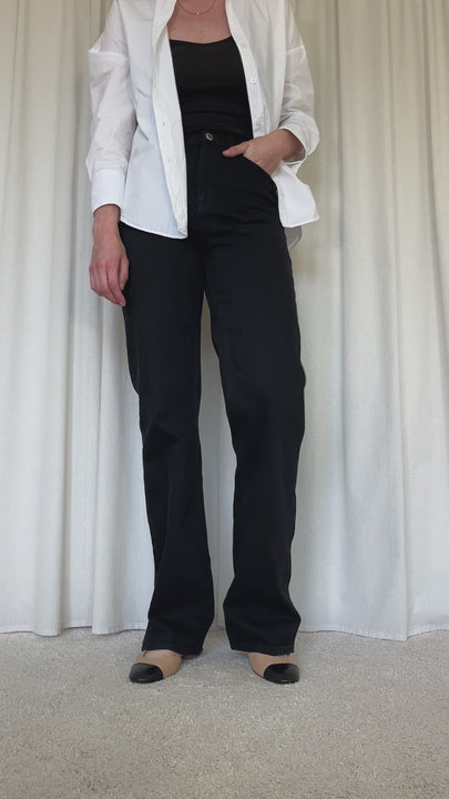 De bedste jeans som kan bruges året rundt! Straight jeans med høj talje og bæltestropper. De lukkes med lynlås og knap og har lommer både for og bag. Modellen er lavet i et straight/lige snit der gør, at de sidder til omkring bagdelen og bliver løsere i bunden. Disse jeans er super cool at style til både stiletter samt sneakers og deres faste pasform gør, at de bliver siddende, hvor de skal.