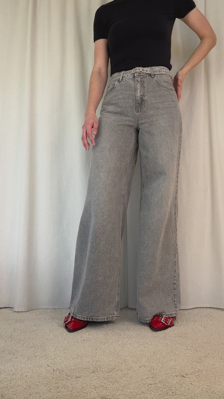Wide jeans er de mest cool lysegrå jeans med ekstra vidde og et fedt denim bælte til (aftagelig). De har høj talje og er lavet i den blødeste denim kvalitet!