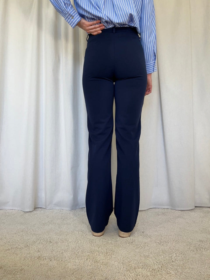 Med dette produkt får du et par super lækre klassiske bukser med fast linning og bælte stropper. Bukserne er designet med høj talje i et tidsløst design, der kan bruges året rundt. De lukkes med lynlås og hægt og er produceret i en blød og let kvalitet, som ikke har tendens til at krølle. Ydermere er der en smule stræk i dem, som gør at de sidder ekstra godt og er behagelige at have på og bevæge sig i.